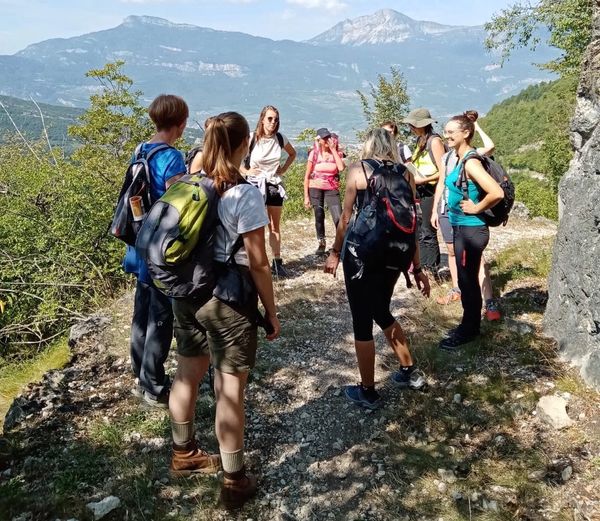 Dal Monte Stivo riflettendo assieme sul significato di radici ed appartenenza, e scaldandoci sotto il sole a 2000 metri dopo il freddo dell'arrivo, all'uso di cartina e bussola per comprendere il territorio, all'osservazione della vita della foresta nel Bosco della Città e le riflessioni collettive sulle pratiche di protezione della montagna e su come creare cambiamento, alla (lunga) camminata sotto il sole sul Sentiero dele Teragnòle approfondendo le nostre fonti di forza e resilienza, analizzando assieme il significato di potere, le sue diverse fonti e facce, come superare le dinamiche dell'individualismo, della competitività e del dominio, e focalizzandoci su come coltivare e supportare assieme il nostro potere interiore e collettivo, sulle nostre esperienze di collaborazione per perseguire uno scopo comune, e riflettendo assieme sull'impatto del creare collettivamente. Abbiamo ascoltato in profondità le riflessioni di tutte, apprendendo con il cuore, e siamo immensamente grate per le parole, le emozioni, i gesti ed i momenti che abbiamo condiviso. Crediamo profondamente nei semini trasformativi che condividiamo assieme, l'una con l'altra, nell'impatto profondo dell'apprendere dalle nostre esperienze collettive, dallo spirito di solidarietà e cura collettiva che abbiamo vissuto nelle nostre camminate, dal sostegno reciproco nel supportare e rafforzare la nostra resilienza per continuare ad affrontare sfide difficili, e siamo immensamente grate a tutte le partecipanti per un'esperienza che ci riempie di forza ed energia.